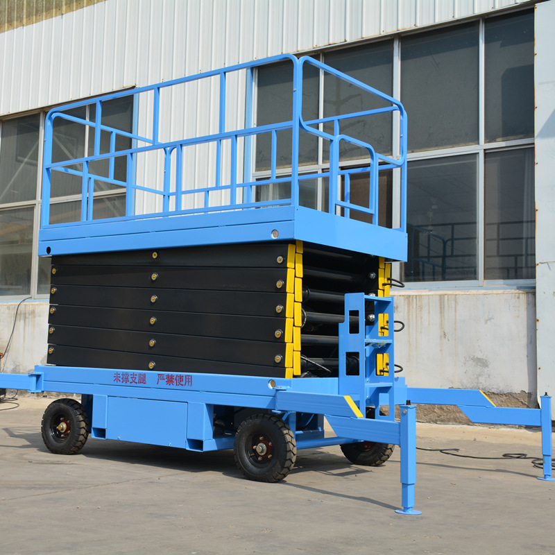 Before using a conventional scissor lift platform, the support legs must be extended. If you need to move it, the platform must be lowered and the support legs retracted before moving. The product features a high load capacity and low price, making it suitable for users with heavy load requirements or locations where the platform does not need to be moved after being raised.