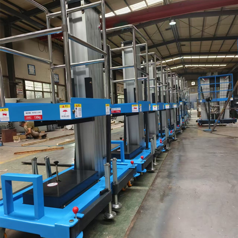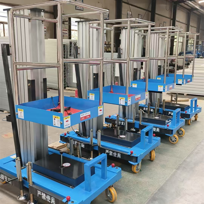 The aluminum alloy lifting platform is made of high-strength premium aluminum alloy, with a manganese steel reinforced chassis and four supporting legs for safety and reliability. The equipment comes standard with both ground control and remote control lift options, making it convenient for personnel working at heights to operate. The equipment is compact and lightweight, easy to use, time-saving, and efficient, making it ideal for accessing narrow spaces or elevator cabins.